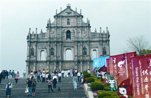 中新網(wǎng)4月23日電 據(jù)澳門(mén)日?qǐng)?bào)報(bào)道,距離奧運(yùn)倒數(shù)100日還有一個(gè)星期,澳門(mén)作為北京奧運(yùn)圣火境外傳遞最后一站,將于5月3日展開(kāi)接力傳送,雖然主辦機(jī)構(gòu)仍未公布火炬?zhèn)魉偷淖詈舐肪,但在澳門(mén)市面多處主要道路或旅游景點(diǎn),已布置一系列的奧運(yùn)宣傳裝飾,市面奧運(yùn)氣氛漸濃。