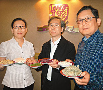 (左起)趙利、謝俊仁及車鎮(zhèn)濤展示夏季食療。(圖片來源:文匯報)