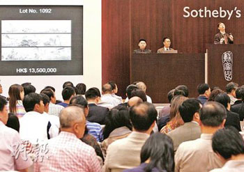 拍賣會氣氛尚算不俗,雖然有四分之一的作品被收回,但總成交價達1.16億元,比估價的9000萬元高。