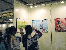 現(xiàn)場(chǎng)展出的漫畫作品吸引愛(ài)好者拍攝。