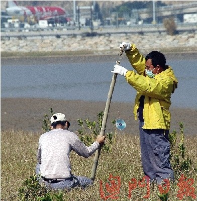 中新網(wǎng)1月19日電 據(jù)澳門日報(bào)報(bào)道,澳門路氹城固體廢物堆填區(qū)和附近淺灘長期有大批雀鳥棲息覓食,經(jīng)常闖入機(jī)場范圍,對航機(jī)安全構(gòu)成威脅。民署18日派出工程人員在靠近機(jī)場的淺灘架設(shè)八組由光盤組成的反光裝置,測試驅(qū)趕雀鳥效果。