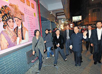 曾蔭權(quán)在過去兩個年度公布《施政報告》時,都特別提及要“致力保存及發(fā)展粵劇這門本土傳統(tǒng)藝術(shù)”,并承諾會“改善香港文化服務(wù)和場地的營運(yùn)和管理”,積極保存和弘揚(yáng)這“非物質(zhì)文化遺產(chǎn)”。