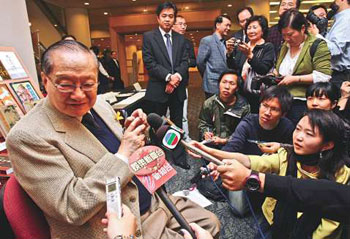 二月十六日,為緬懷上月底病逝的武俠小說宗師梁羽生,《大公報》和天地圖書在香港中央圖書館舉辦座談會。著名武俠小說作家金庸就梁羽生在當代文學、詩詞、楹聯(lián)等方面的造詣和成就以及生平逸事趣聞,與其著作愛好者和公眾座談分享。 中新社發(fā) 張勤 攝