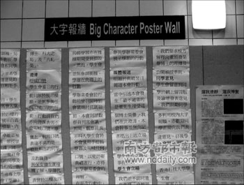 內(nèi)地生抱怨在香港科大受到歧視,香港科技大學(xué)圖書館附近有個被稱為“民主墻”的公共張貼欄。在2007年7月,民主墻上就出現(xiàn)一個大字報,首次將內(nèi)地學(xué)生感覺被“侮辱”現(xiàn)象公之于眾。
