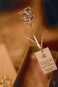 圖:蘸上純銀的鮮花玫瑰回贈嘉賓。(圖片來源:澳門日報(bào))
