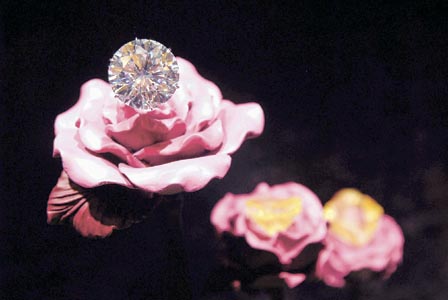 中新網(wǎng)12月19日電 周大福老板鄭裕彤早前將自己價(jià)值10億元的珍藏珠寶鉆飾“大曬冷”,在會(huì)展舉辦一個(gè)只招待VIP的珠寶展覽,其中一顆79.38卡的超級(jí)巨鉆成為全場(chǎng)焦點(diǎn),大搶超性感模特兒的風(fēng)頭。