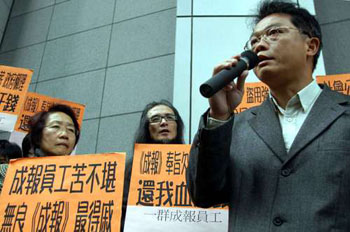 大約三十名《成報(bào)》前員工22日中午在工聯(lián)會(huì)立法會(huì)議員陳婉嫻陪同下,手持橫額和標(biāo)語(yǔ)到在灣仔的警察總部抗議并報(bào)案,要求警方商業(yè)罪案調(diào)查科就成報(bào)欠薪事件進(jìn)行調(diào)查,協(xié)助50名員工追討300萬(wàn)元欠薪。員工代表說(shuō),法庭去年雖然裁定《成報(bào)》要分四期償還欠薪,但員工至今仍未收到款項(xiàng),促請(qǐng)政府正視事件,并希望政府檢討勞工法例。