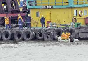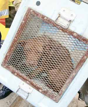 捉狗隊(duì)員見事敗,即向消防處求助,大批消防員趕到場,而愛護(hù)動物協(xié)會亦有派員趕到。由于跳海逃走的唐狗游出離岸300多公尺遠(yuǎn)的躉船,消防安排船只到場接載捉狗隊(duì)出海,再轉(zhuǎn)乘橡皮艇接近躉船船身,擾攘個(gè)多小時(shí),雖然唐狗曾再度跳海,但被捉狗隊(duì)員的捉狗索套緊頸項(xiàng)就逮,之后將其納入狗籠,乘船上岸,帶返九龍動物管理中心接受檢驗(yàn)。