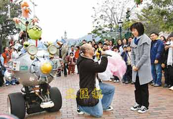 哪怕只是寥寥數(shù)句,沒有以甚么星星、月亮作比喻,袁先生的說話卻是肺腑之言。或許因為過于緊張的關(guān)系,他翻了幾遍,才能掏出放在口袋里的指環(huán),整個過程顯得相當(dāng)笨拙,但卻反為他添多一分可愛感。最終,女友不用細(xì)想,在數(shù)十名圍觀的樂園游客面前,將下半生的幸福交給男友。 (聶曉輝)