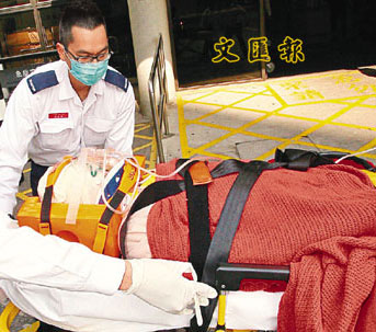 有街坊途經(jīng)該處聽(tīng)聞巨響,發(fā)現(xiàn)事態(tài)嚴(yán)重,馬上報(bào)警。消防員接報(bào)到場(chǎng),升起云梯到檐篷上將胡某救下,送院不治。