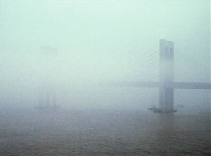 圖:西灣大橋被霧靄包圍,如從中“斷開”。(圖片來源:澳門日報(bào))