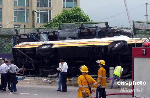 事發(fā)于早上九時許,出事的旅游巴有五十五個座位,卻載有六十五名乘客,由慈云山一所教會前往西貢參加一個宗教活動,駛至西貢公路下坡時,在南邊圍回旋處失事側翻,一邊車身壓向隔音屏障。旅游巴四輪朝上,車身嚴重損毀。