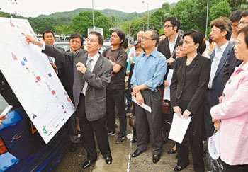 立法會共有7名議員到發(fā)生大車禍的事故地點(diǎn)考察,聽取路政署官員和警方交通部介紹事發(fā)路面的交通安全安排。