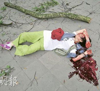 由于言語不通,小文幾經(jīng)艱辛,終在他人協(xié)助下將重傷的胞姐送往都江堰某醫(yī)院,不料市內(nèi)有兩間醫(yī)院也損毀倒塌,且斷水?dāng)嚯,早堆滿了尸體及傷者。數(shù)小時(shí)后,小文與已陷入昏迷的姐姐擠上載滿傷者的救護(hù)車,前往成都四川省人民醫(yī)院求醫(yī)。