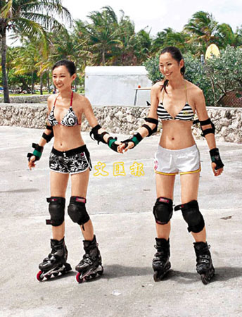 中新網(wǎng)6月2日電 據(jù)香港文匯報報道,《2008香港小姐競選》最后一日的活動在邁阿密“South Beach”拍攝,12位候選港姐被安排分組穿著三點式加短褲在沙灘玩滾軸溜冰、單車、飛碟和跑步。而整個港姐外景拍攝亦已經(jīng)結(jié)束,于1日起程返回香港。