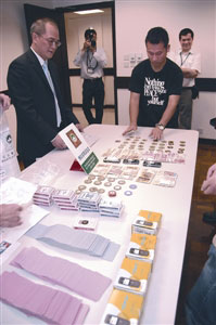 圖:澳門司警搜獲的大批啤牌及證物。(圖片來源:澳門日報)