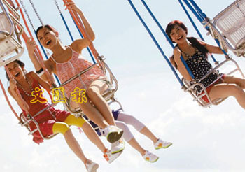 3號張舒雅(左)玩“星際蜘蛛”,嚇得面青唇白,大叫“我好怕呀!”。(圖片來源:文匯報)