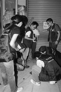 圖:澳門司警在行動中截獲一名逃走的內(nèi)地男子。(圖片來源:澳門日報)