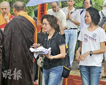 20多名親友拜祭后返回車上休息,蘇志豪的數(shù)十名同事則在路邊列隊(duì)默哀,神情肅穆。其后眾人圍著祭品鞠躬,各人在場(chǎng)逗留個(gè)多小時(shí)后離去。