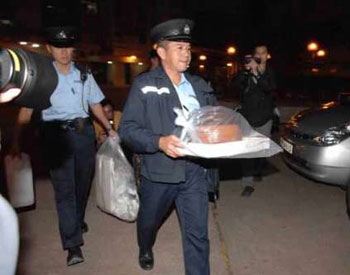 警員檢走一個(gè)湯煲,疑有人下藥迷昏子女再施毒手。(圖片來源:大公報(bào))