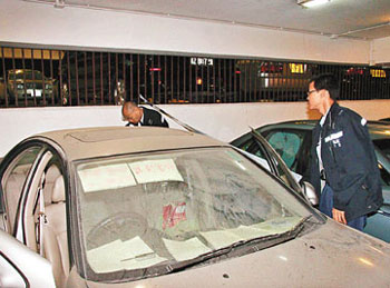 其間,有巡樓的保安員發(fā)現(xiàn)該私家車冒煙,以為發(fā)生火警,上前察看下發(fā)現(xiàn)擋風玻璃及司機位玻璃窗貼有大字報,上面寫著“××銀行謀財害命,又一城分行!”保安員并發(fā)現(xiàn)濃煙密布的車內(nèi),有一名女子情緒激動,懷疑她自殺,報警求助。