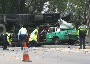 消防員接報趕至現場,發(fā)現被壓扁的的士車廂內躺著6名男子,但已全部氣絕身亡,部分人更被壓至面貌變形,頭顱爆裂。警方事后驗出被告酒精含量是153微克,超標6倍半。