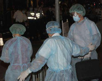 晚上10時(shí)35分,特區(qū)政府特派兩輛救護(hù)車(chē),分別前往酒店和醫(yī)院,接走“全副裝備”的4名檢疫者。至截稿時(shí),專(zhuān)機(jī)準(zhǔn)備起飛。