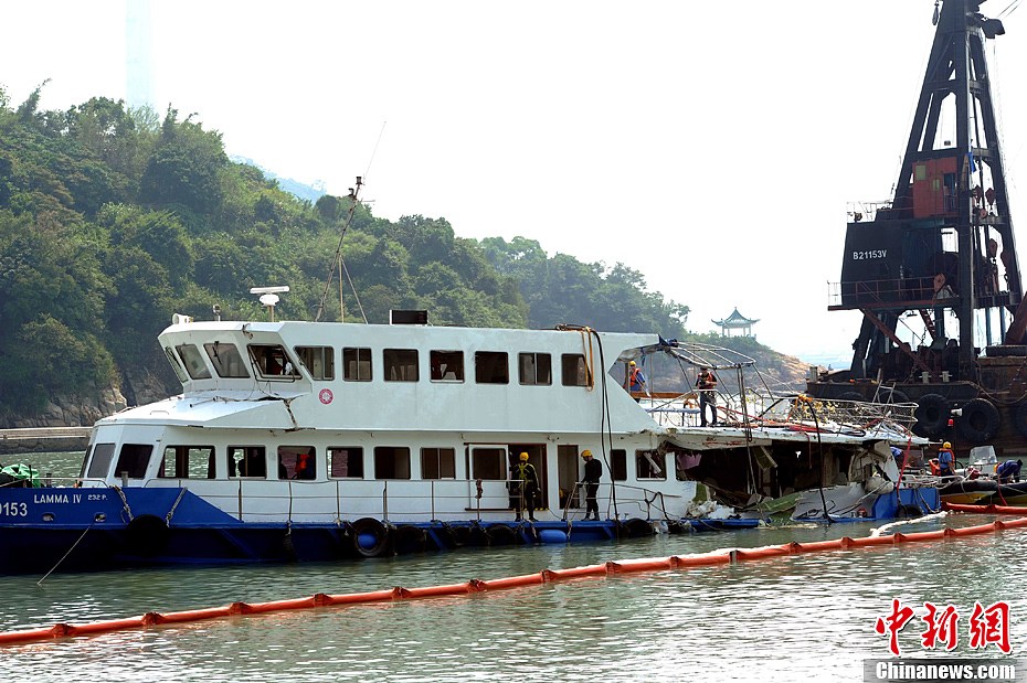 香港撞船事故:“南丫四號(hào)”被撈起 船尾受損嚴(yán)重