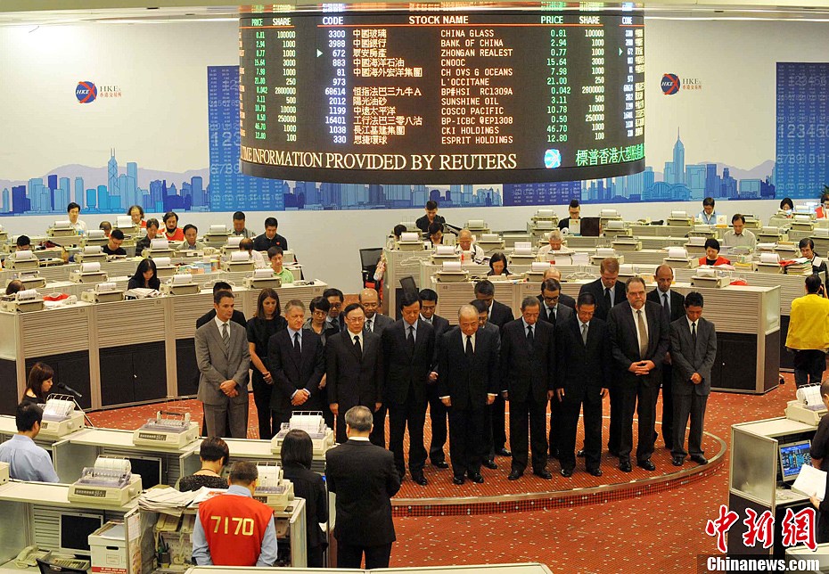 港交所主席周松崗等在港交所場(chǎng)內(nèi)默哀