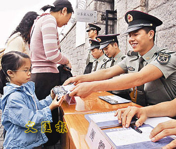 中新網(wǎng)4月28日電 據(jù)香港文匯報(bào)報(bào)道,五一勞動(dòng)節(jié)當(dāng)天,市民再次有機(jī)會(huì)與解放軍駐港部隊(duì)作近距離接觸。解放軍駐港部隊(duì)27日晨在添馬艦、石崗及槍會(huì)山軍營(yíng)派發(fā)一共8000張門(mén)票,吸引大批市民到場(chǎng)輪候,部分人更在取得門(mén)券后再排隊(duì)領(lǐng)取。