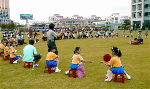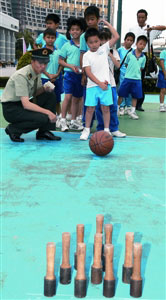 今年“六•一”兒童節(jié)參觀軍營活動一改過往只設(shè)參觀的單向活動方式,新增了一批駐軍官兵與小學(xué)生互動的游園和娛樂活動,包括有軍事常識問答、猜謎語、“擊鼓傳花”、水上漂、釣魚、保齡和拔河等游戲,學(xué)生與駐軍官兵打成一片,學(xué)生歡愉的笑聲傳遍整個軍營。不少學(xué)生紛紛站在升旗臺、輪式裝甲車上,與官兵拍照留念。