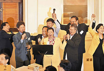 一眾議員高歌一曲《朋友》,大家流露依依不舍之情。(圖片來源:文匯報(bào))