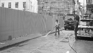 澳門民署派員清洗街道。(圖片來(lái)源:澳門日?qǐng)?bào))