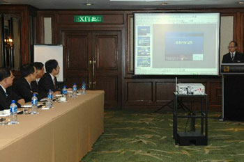 政制及內(nèi)地事務(wù)局副秘書(shū)長(zhǎng)陳偉基(右)20日早向臺(tái)灣高雄市政府及旅游界參訪團(tuán)簡(jiǎn)介香港的旅游情況。(圖片來(lái)源:香港特區(qū)政府網(wǎng)站)