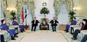 何厚鏵在晚宴前會見了代表團一行,國家載人航天工程贈送“神舟七號”載人飛船模型給特區(qū)政府,何厚鏵代表特區(qū)政府贈送金蓮花擺設給代表團。