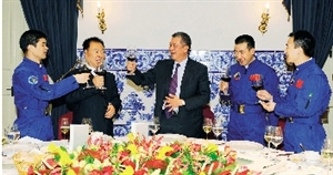 特區(qū)政府傍晚在政府總部設宴歡迎“神舟七號”載人航天飛行代表團。何厚鏵在晚宴上致辭表示:“祖國航天事業(yè)能夠可持續(xù)地取得精益求精的發(fā)展,除了雄厚的國力、優(yōu)質的統(tǒng)籌、杰出的人才,以及科學的探索勇氣之外,更重要的,就是這一事業(yè)的廣大參與者,具有崇高的民族自豪感和無私的報國精神,從而,能夠一步一腳印地,克服一個又一個科技挑戰(zhàn)和心理挑戰(zhàn),一次又一次地和全國人民一起分享成功的果實!