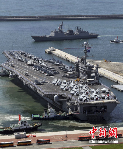 中新網(wǎng)7月21日電 據(jù)韓聯(lián)社報(bào)道,美國(guó)海軍第7艦隊(duì)的航空母艦“喬治·華盛頓”號(hào)21日抵達(dá)釜山港,準(zhǔn)備參加從25日開始的韓美聯(lián)合軍演。