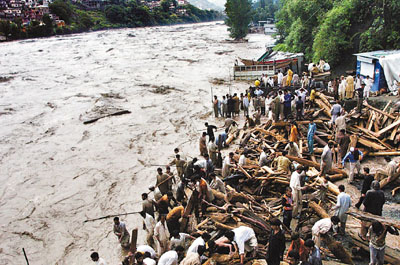 巴基斯坦北部凱伯爾-普什圖省是重災(zāi)區(qū),進入緊急狀態(tài)。貝沙姆地區(qū)泥石流,將多間房屋掩埋,活埋49人。賈爾瑟達地區(qū)一個新建堤壩崩塌,5000棟房屋被洪水沒頂,估計40萬人被困西北部各村落。