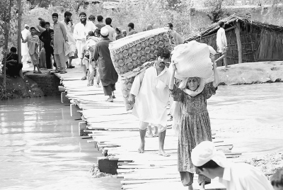 開(kāi)伯爾—普什圖省的斯瓦特河谷地帶是受災(zāi)最為嚴(yán)重的地區(qū)之一。當(dāng)?shù)氐姆课荨⑨t(yī)院和通信設(shè)施已經(jīng)遭到嚴(yán)重毀壞。由于此前塔利班等武裝組織一直盤(pán)踞在這里,自去年巴軍方發(fā)動(dòng)大規(guī)模清剿行動(dòng)以后,大批的民眾流離失所,目前回歸的難民剛得到安頓,便又受到洪災(zāi)的侵害,這將進(jìn)一步延緩當(dāng)?shù)刂亟ǖ牟椒ァ?/p>