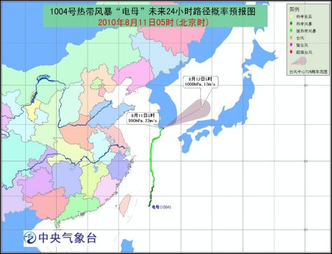 中新網(wǎng)8月11日電 據(jù)中央氣象臺消息,今年第4號熱帶風(fēng)暴“電母”已于8月11日06時(shí)20分前后在韓國南部沿海登陸,登陸時(shí)中心附近最大風(fēng)力有9級(23米/秒),中心最低氣壓為990百帕。
