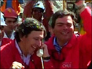 報(bào)道稱,救援人員通過(guò)鉆孔接通電話線,被困礦工通過(guò)電話說(shuō)他們健康狀況良好,但是說(shuō)他們有胃痙攣,因?yàn)楸焕畮滋飚?dāng)中,每48小時(shí)每個(gè)礦工只能吃兩湯匙金槍魚,一口牛奶和半塊餅干維持生命。