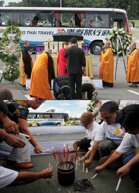 中新網(wǎng)8月25日電 綜合媒體報(bào)道,8月25日,是菲律賓所定的全國哀悼日,菲律賓人將與中國人一道,悼念在菲人質(zhì)劫持事件中遇難的中國香港游客。港府從24日至26日,連續(xù)三天為菲律賓人質(zhì)事件遇難者下半旗志哀。在菲律賓,民眾前往黎剎公園事發(fā)現(xiàn)場給遇難者獻(xiàn)花,氣氛凝重;遇難者家屬24日舉行路祭,場面催人淚下。