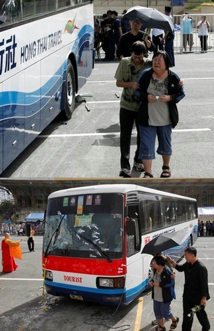 8月23日上午9時許,21名香港游客在馬尼拉遭一名菲律賓前警官劫持。菲當局派出談判專家,試圖通過和平的談判方式解決危機。但是形勢在當晚7時40分許急轉(zhuǎn)直下,遭劫持巴士內(nèi)傳來數(shù)聲槍響,菲警方隨即實施突擊解救行動,將劫匪擊斃。