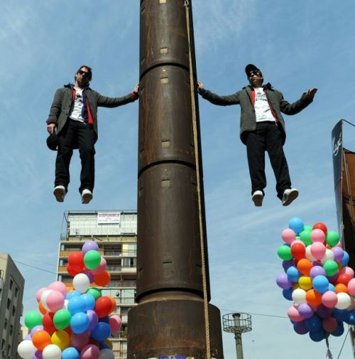 9日,兄弟兩人在智利首都圣地亞哥熱鬧的街頭展開令人驚訝的絕技表演,吸引了眾多路人駐足觀看,有人開車路過,還特地停車前來看熱鬧。只見兩人神態(tài)輕松地漂浮在7米高的半空中,只有各出一只手扶著同一根立地大柱子,雙腳懸空,就這樣保持“站姿”“站”了足足200分鐘,創(chuàng)造了一項新的世界紀(jì)錄。
