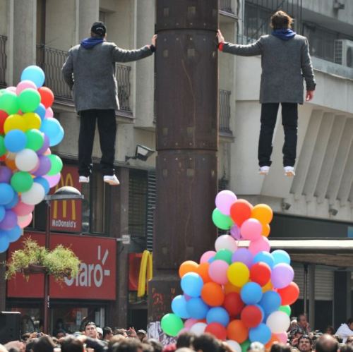 據(jù)報道,今年9月18日是智利獨立200周年的紀(jì)念日,這對在智利國內(nèi)很出名的雙胞胎兄弟尼古拉斯(Nicolas Luisetti Olhaberry)和約翰(John Paul Olhaberry)為了向這個特殊的節(jié)日致敬,提前用表演“漂浮術(shù)”的方式進(jìn)行慶祝。