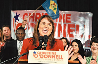 中新網(wǎng)9月16日電 據(jù)臺(tái)灣“聯(lián)合新聞網(wǎng)”報(bào)道,美國(guó)兩大黨14日在多個(gè)州舉行期中選舉初選,極端保守派系“茶黨”(Tea Party)初露鋒芒,攻城略地。沒(méi)有公職經(jīng)驗(yàn)、之前屢戰(zhàn)屢敗的該黨候選人克里斯汀.奧唐納爾,14日在特拉華州聯(lián)邦參議員初選擊敗共和黨支持的現(xiàn)任眾議員卡索,震驚美國(guó)政壇。
