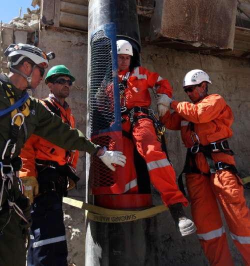 這些礦工們已開始服用100毫克的阿司匹林,以防升井的過程中發(fā)生血管阻塞。他們?cè)谧詈髷?shù)小時(shí),將穿上緊縮襪與特制束身衣,這些衣服裝有電極,以跟蹤他們的心跳、呼吸、體溫和耗氧量。同時(shí),他們僅能食用美國(guó)太空總署提供的高熱量流質(zhì)食物,以防在升井的過程中嘔吐。