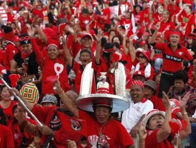 2006年9月19日,泰國發(fā)生政變,總理他信領導的政府被推翻。從今年3月起,“紅衫軍”在曼谷舉行長達兩個月的示威集會,并數(shù)次與軍隊發(fā)生沖突,造成近90人死亡,至少1900人受傷。5月19日集會結束后,納塔武等“紅衫軍”主要領導人前往警局自首并被扣押至今。(記者 朱麗)