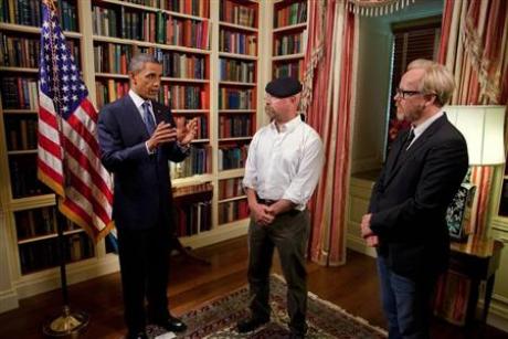 中新網(wǎng)10月19日電 據(jù)外電報道,美國總統(tǒng)奧巴馬日前出現(xiàn)在著名的電視系列片“流言終結(jié)者”中。白宮稱,總統(tǒng)此舉旨在向公眾強(qiáng)調(diào)科學(xué)、數(shù)學(xué)和工程學(xué)的重要性。