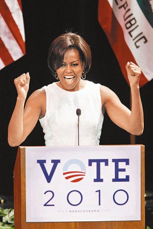 中新網(wǎng)11月1日電 據(jù)香港《文匯報》網(wǎng)站報道,美國中期選舉11月2日舉行,被視為民主黨秘密武器的美國第一夫人米歇爾.奧巴馬也盡最后努力拉票。她連日穿梭美國西岸各個州,以“慈母”形象為不同候選人站臺,很受選民歡迎。政治分析家認為,米歇爾的親和形象,有助于推動未定投票取向的選民為民主黨投票。